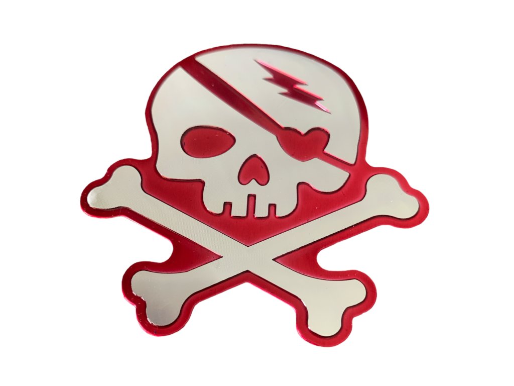 3D Chromová Samolepka - Lebka se zkříženými hnáty (červená)