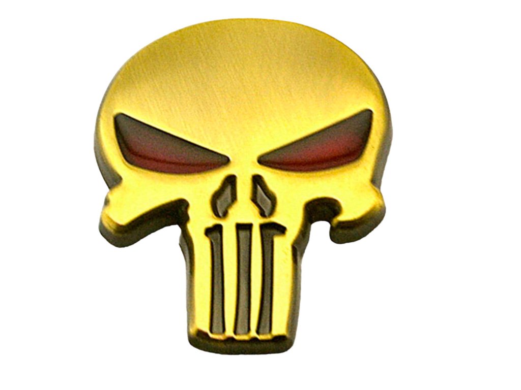 3D chromová samolepka - Zlatá lebka s červenýma očima