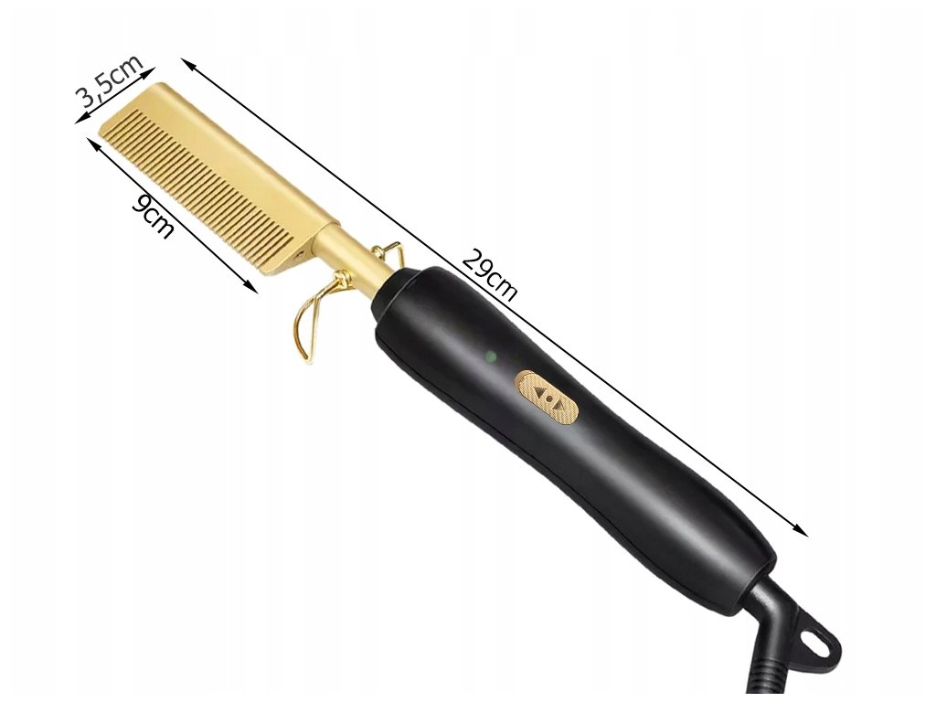 Objevte jedinečný elektrický hřeben, který kombinuje výhody kulmy a žehličky v jednom nástroji. Tento stylový černo-zlatý hřeben nejenže rychle a snadno narovná vaše vlasy, ale také vytvoří krásné lokny. Už nemusíte mít doma několik přístrojů – s tímto multifunkčním hřebenem zvládnete vše, co vaše vlasy potřebují, a to s maximálním komfortem a efektivitou.