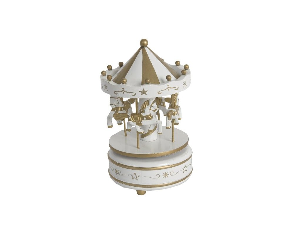 Hrací kolotoč s koníky - bílo-zlatý