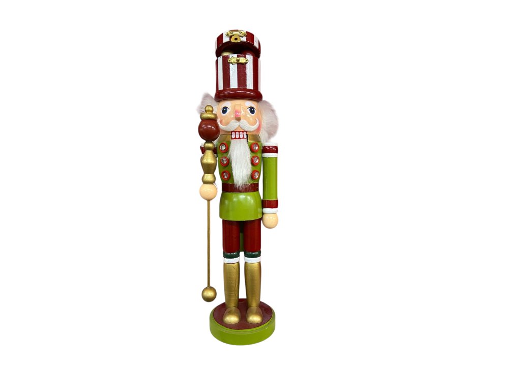 Vánoční dekorace louskáček - Zeleno-červený v klobouku (35 cm)