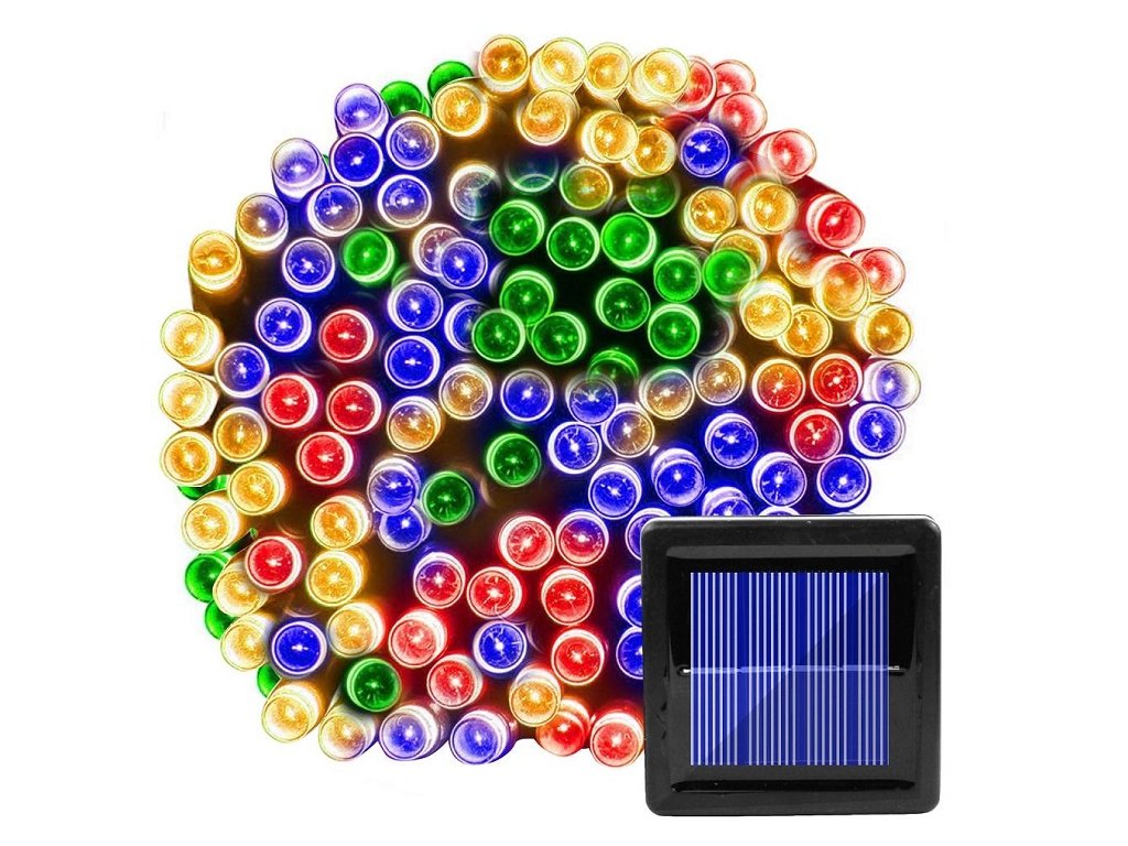 Venkovní vánoční led osvětlení na solární panel - barevné (10 m)