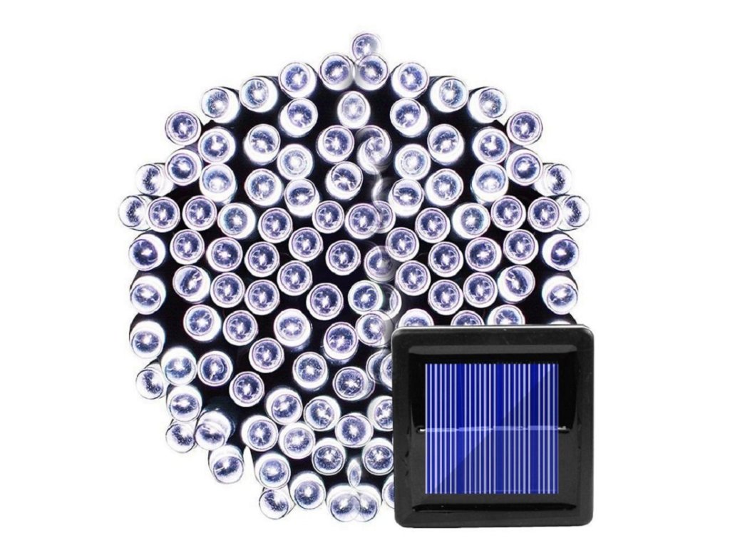Venkovní vánoční led osvětlení na solární panel - studená bílá (10 m)