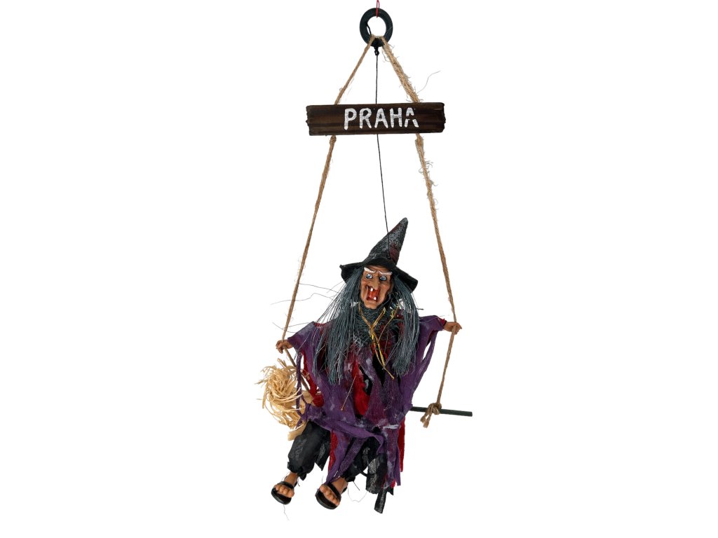 Dřevěný kroužek nad čarodějnicí umožňuje jednoduché zavěšení na stěnu, strop či jiné místo, kde bude nejlépe vynikat. Čarodějnice navíc vydává zvuky, kopí nohama a bliká očima, což přitáhne pozornost nejen dětí, ale i dospělých a umocní tak kouzlo každé oslavy.